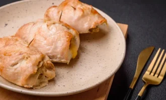 - Прса исећи на мале коцкице и пржити док чварци не постану хрскави. Послужите банош уз обилно млет сос од печурака и поспите чварцима.